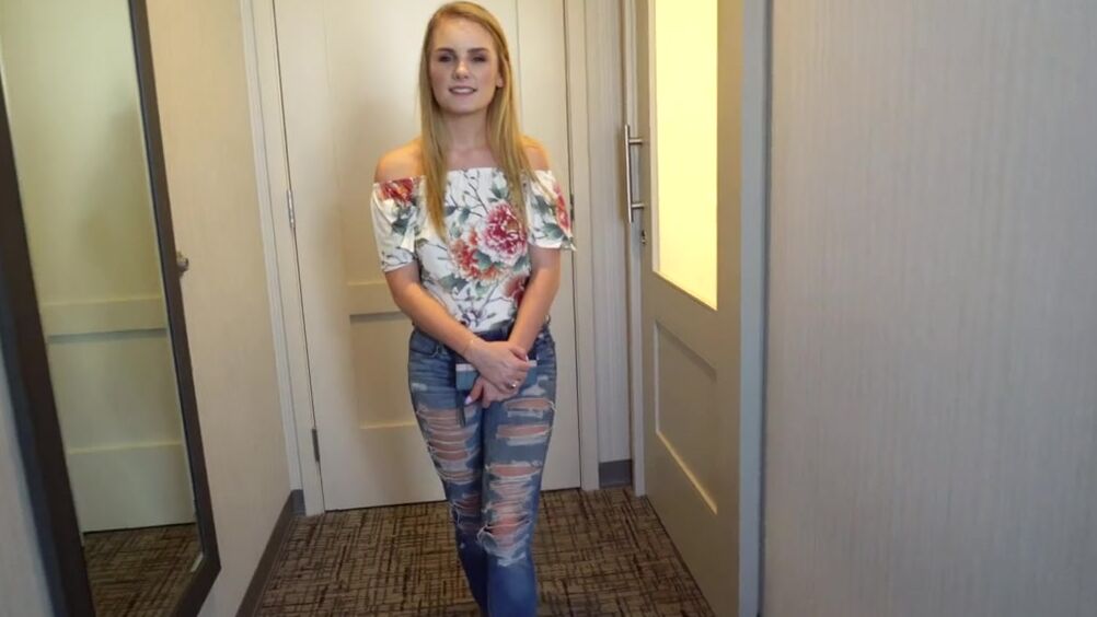 Хотела уйти, но осталась, на кастинге ей предложили деньги за секс. Юная красотка пустила большой член в гладкую киску и ротик, под прицелом камеры её трахнул агент и кончил в рот.